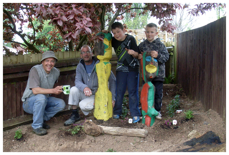 Part of our work involves the incorporation of the sculptures created by the young people into their parents' gardens. We also involve gardeners and craftsmen who can educate and instruct the young people about growing palnts and practical jobs such as fencing.